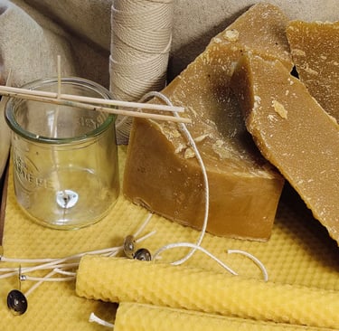 Vi tillverkar middagsljus och små ljus från inhemska bivaxplattor.